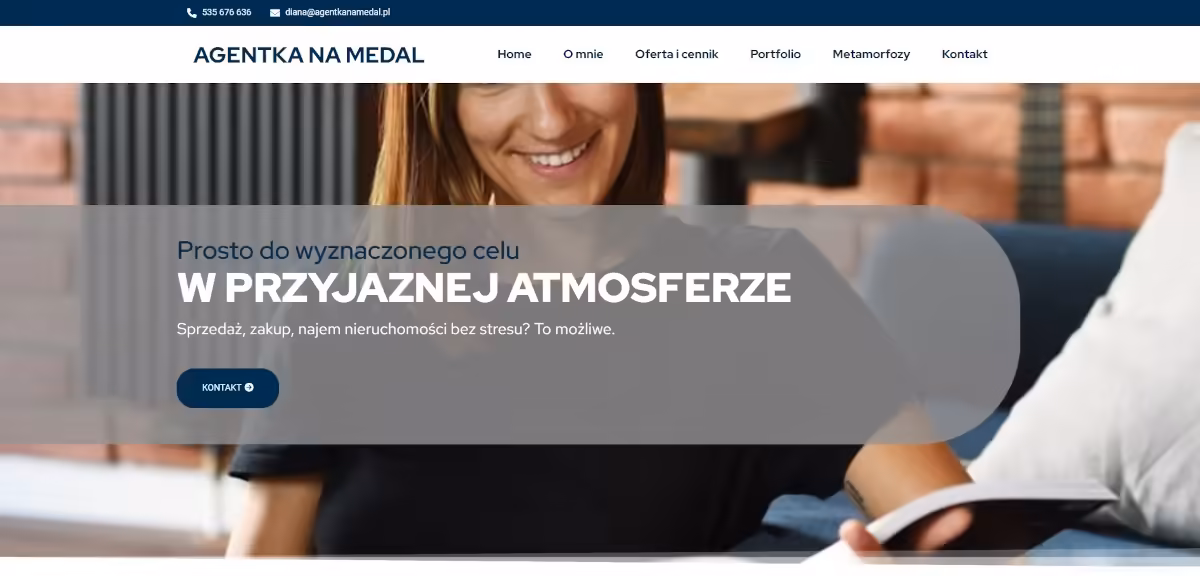 Strona Internetowa Agentki Na Medal to wyjątkowe miejsce gdzie możesz zapoznać się z ofertą agencji nieruchomości, prześledzic krok po kroku jak wygląda współpraca i jakich efektów możesz się spodziewać.