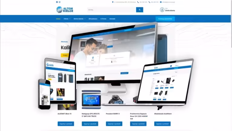 • Navigation: Podświetlanie aktywnych elementów menu, rozwijane listy z animowanym otwieraniem.